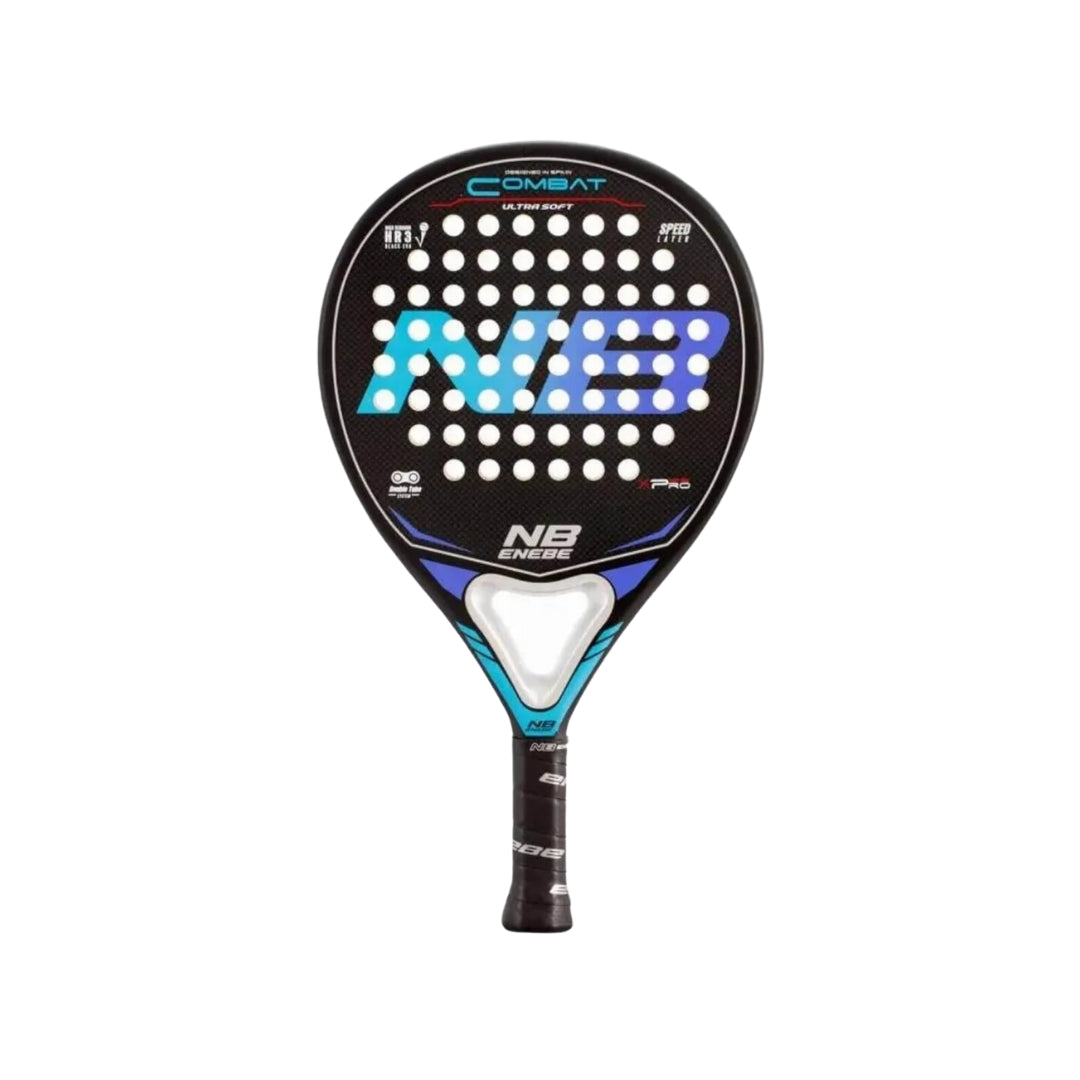 Pala Enebe Combat Ultrasoft Azul Violeta Este modelo Azul/Violeta está disponible en pesos más ligeros (350-360 gr). Ideal para aquellos que busquen palas más livianas.